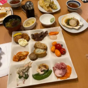 昨年訪問して静かで落ち着いていたので、再訪。部屋からのサロマ湖の眺めが素晴らしく、特に、晴れた日の夕焼けが心に残る。 食事はやはり海鮮が美味しく、はじめに出される盛り合わせが良かった。また、テーブルに番号入りのカードがあり、それをかまど焼き(パイ包み)のシェフに出すと、出来上がりをサービスすると言うシステムも工夫されていると思う。 部屋の机の引き出しに、双眼鏡が置いてあるのも、探鳥観察への心遣いが感じられる。