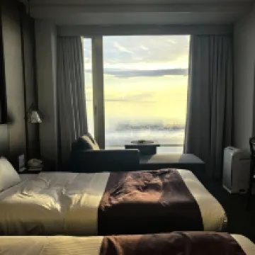 美しい温泉ホテルです。設備は少し古いですが、それでも絶対にお勧めです。夕食のビュッフェは最高で、ステーキとホタテの刺身はぜひ試してください。今でもその食事を夢見ています。私たちの部屋は湖に面していて、夜、窓から外を見ると、キラキラ輝く星でいっぱいの明るい夜空が見えます。巨大な星です。唯一の不満は、部屋がかなり息苦しいことです。新鮮な空気を入れるために窓を開けてみてください。