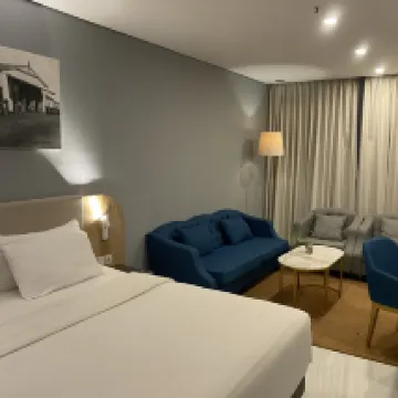 The hotel felt relatively new, only a couple years old and in great shape. The bedroom had semi firm but comfortable mattrass, with abundant pillows. Delightfully we got a 55" LG Smart Tv, with the to-date streaming services available (Netflix, Disney, Prime, Vidio, Youtube) and also cable tv showing international channels (AXN, Japanese, Arabic, etc). The room felt very cosy for resting after a long day's work or travel. The bathroom, although only had showers and no bathtub, gave great water pressure and hot water. The only complaint from the hotel is perhaps due to the connecting door, we can hear the other room's door closing and opening loudly as well as some talking from the other room.