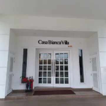 Casa Bianca Villa is in a quiet residential area guarded at night, giving a sense of safety. The room is spacious and clean, though some wear and tear like broken wallpaper is visible. The villa has two swimming pools, ideal for families to relax. With limited rooms, the place feels private and peaceful. A comfortable choice for a leisure stay.