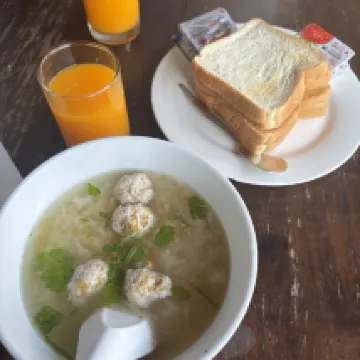 一見清潔感があるお部屋でしたがテレビの上のホコリや浴室にハエやムカデが発生していてすこし残念でした。シーツやタオルでさえ汚すとお金を取られると注意書きが書かれており色々と気を使います。アメニティはシャンプーとボディソープしかなく、ドライヤーもなかったためかなり不便でした。朝食はいくつかある中から自分で選択できます。私たちはおかゆのようなものを頼みましたがそれなりに美味しかったです。