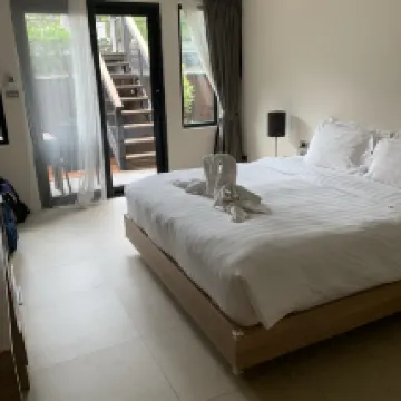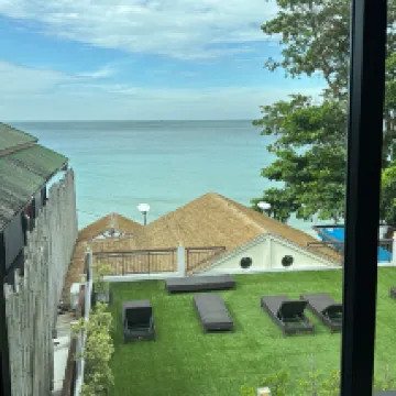 Quite, so close to with sand beach , the food in higher quality. Staffs always friendly. 711 next door, restaurants and tourist booking services, moto bicker just nearby. Great stay here.