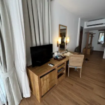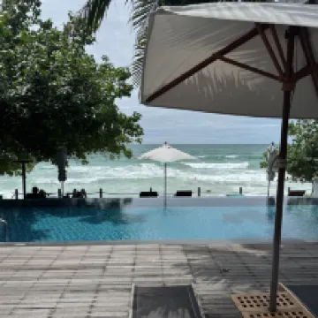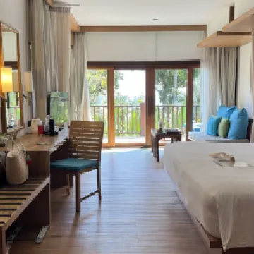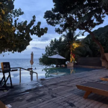 🎈素晴らしいホテルです。部屋は海とプールを見下ろす丘の上にありました。ホテルは緑に囲まれています。ビーチは清潔で手入れが行き届いています。10月1日以降、多くの観光客が訪れました。近くには他に2軒のホテルと3軒のレストランがあります。 🎈桟橋からホテルまでのボート送迎は料金に含まれています。👍 🎈強風時は波が高くなります。赤旗は出ますが、海から追い出されることはありません。 🎈タイ風の朝食は最高です。シェフがスクランブルエッグやオムレツを別に作ってくれます。 コーヒーマシンはとても濃いコーヒーが淹れられます。アメリカーノでさえ信じられないほど濃いです。🎉