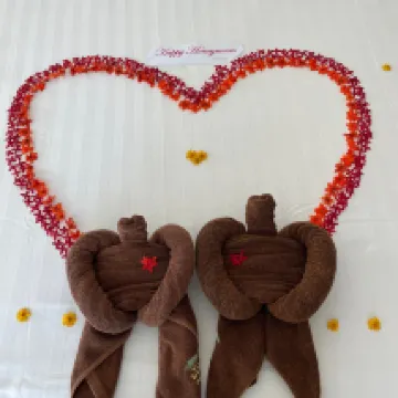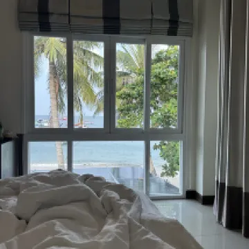 We stayed for six days while diving with The Black Turtle Dive Centre. The price is reasonable while we paid a little extra for the sea view room. The staff decorated it for us because it’s our honeymoon. Pros: The view and sunset. Place to hang our wet swim wear. Restaurant downstairs that opens 6:30-22:00. Convenient location and lots of restaurants, 7-11, pharmacies nearby. Cons: Reception is not 24 hours. Shampoo and body wash bottles are made of glass so it’s easily breakable.