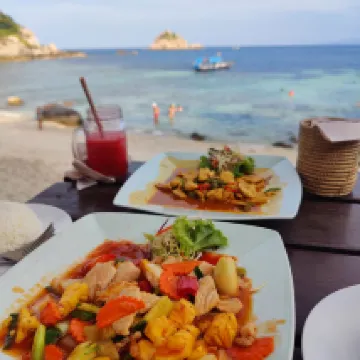 This is a gem. A long way from the action on the other side of the island but if you are looking for party party it’s only a taxi ride away. We stayed in a hillside cabin clean quaint nicely minimal decorated. Felt like a mountain goat getting up from the private beach but it was worth it for the views from the room. Would definitely like to stay here again the snorkeling was fabulous straight out the front. Staff are awesome. Food was fine but nothing fancy which was enough.
