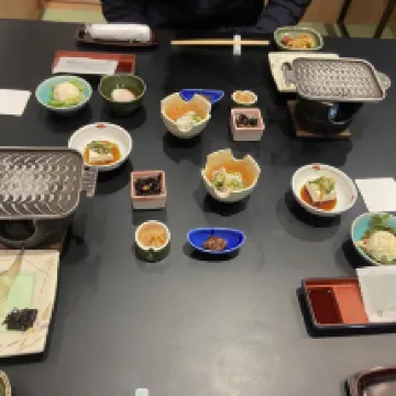 蟹料理を目当てに奮発して予約しました。 駐車場に乗り入れたらすぐに係員がやって来て案内してくれました。 老舗のようですが、リフォームされており古さは感じません。 初めての地ですが、それなりの温泉街です。 立地的に絶景などの眺望は望めません。 部屋は露天風呂付きの部屋ですが、上記のとおり立地的な都合で眺めは残念。 しかし、この浴槽には源泉が掛け流されているため、とても泉質の良い素晴らしいお湯です。 一方で大浴場は循環併用のようで、部屋の露天風呂と比較すると泉質はいまひとつでした。 料理はやはり蟹料理がウリで、思っていたより小さかったですが、とても美味しいです。 (間違いなく過去一番) 焼き蟹は初めてでしたが、身も味噌も水分が飛ぶので、旨味が増します。 蒸し蟹もこれまで食べて来た茹で蟹より身の美味しさを実感出来ますが、味噌は断然焼き蟹の方が美味しく食べられると思います。 刺身も初めて食べましたが、そのありがたみゆえに美味しく感じられました。 蟹以外にも魚介を中心とした料理が提供され、刺身は美味しかったですが、他の料理は量も少なくお酒のつまみとして食べないと満腹感を得られないかな? 最後のお米のお供に提供されたお新香も残念な品と量でした。 朝食もお米に合う品が少なく、料理全般として蟹は満足ながらも他は期待はずれ感の方が強かったです。 お部屋は細部にもてなし感を感じられ満足でした。 お世話係の女性の方は比較的高齢の方でしたので、知識も豊富でややお節介とも取れるサービス精神の強い方で好感が持てました。 全体的にお値段を考えるとちょっと高いかなぁ?と感じなくもありませんが、 とても居心地の良い旅館でした。