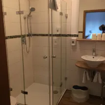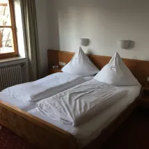 Hôtel sans accueil on attend dans le couloir que quelqu'un nous voit. Il ne parle pas autre chose qu'allemand, il essaie de nous expliquer où est la chambre mais on marche pendant 10 minutes avec la valise sans ascenseur avant de trouver... une chambre avec 2 petits lits... pour un couple ! Et il nous explique qu'il ne comprend pas, mais je crois que c’était de la mauvais foi si ca passe ou ça casse, la chambre est louée et forcément pas de chambre libre. Très déçue surtout du foutage de gueule. Heureusement 2 supers dames qui ont servis le soir un super repas !