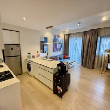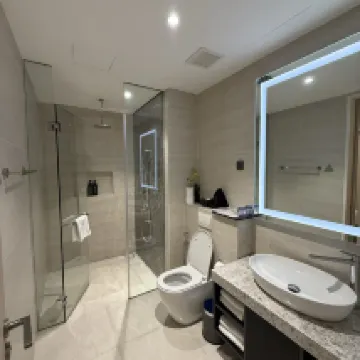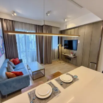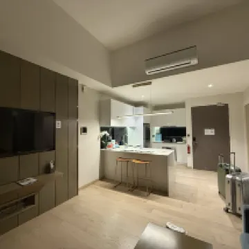 ツインタワーから徒歩圏内で、非常に便利です。建物の階下には中国系スーパーがありますが、品揃えが少し少ないのが気になりました。ツインタワー下のショッピングモール以外にも、周辺には飲食店がいくつかあり、特にタワー2の最上階にあるAvalレストランは、必ず事前に予約することをお勧めします。この建物の高層階からはツインタワーを間近に眺めることができ、今回宿泊したベッドルームからも片方のタワーが直接見えました。滞在中、ツインタワーのライトアップが2回も変わって、とても満足できました。 部屋は可もなく不可もなくといった感じですが、天井が高く、毎日清掃が行き届いていました。ミネラルウォーターも毎日4本補充されます。洗濯機には乾燥機能も付いていて非常に便利でしたが、ハンガーが少し少なかったのが唯一の惜しい点です。