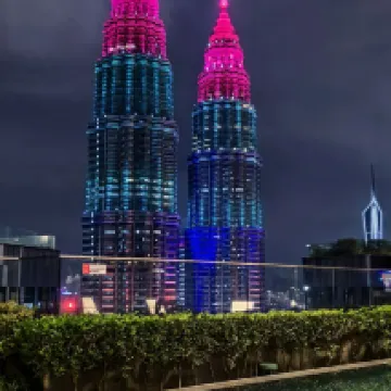 ツインタワーのすぐそばにあり、ホテルの屋上プールからは遮るものが全くなく、ツインタワーの最高の写真が撮れます!