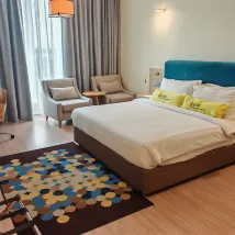 会議のためにここにいたので、ホテルの裏側まで歩いて行けて便利でした。滞在中は、Grabcar/Grabfood を簡単に利用できました。サウナ室はリクエストに応じて温められます。ただし、スタッフの態度やおもてなしの面でのカスタマー サービスには、まだまだ改善の余地があります。もう一度同じ経験をする忍耐力があれば、また泊まりたいと思います。