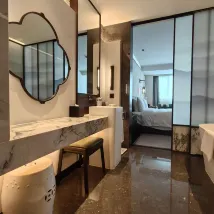 I had a great stay. I was upgraded to a massive suite, which was lovely. The staff were very helpful. The breakfast was busy, but there were helpful signs with advice about the best time to go during the holiday. I did struggle to sleep the first night, as fireworks went off until gone 1.30am but that’s not the hotel’s fault. Worth keeping in mind though if you’re looking to stay there during CNY. Location is otherwise nice, with a lake opposite the hotel which is nice to walk around.