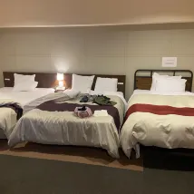 2ベットの部屋から3ベットの部屋に現地で変更してくれました。 部屋も広くゆっくり家族でくつろげるスペースがありました。 浴室が所謂3点ユニットで、清掃はされていると思いますが、若干下水の匂いがしてました。 朝食もイメージ画像とは内容が違い、メニューも少なく感じましたが、味は美味しかったです。 駐車場が狭く一杯で、近隣の提携駐車場に止めました。 チェックイン時間が遅くなる予定だったので、事前にメールにて連絡し、返信も丁寧でした。