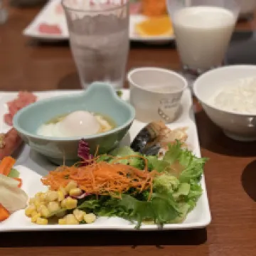今回はホテルを満喫するのが目的で選ばさせていただきました 夕食・朝食付きで客室露天風呂のあるお部屋に宿泊しました。 お部屋にはスパークリングワインが用意されていて、甘口だったので普段ワインが苦手な私でもとても美味しくいただけました。 ブッフェは夜も朝も種類が豊富で大満足。 夜はお寿司や上州牛など魅力的なメニューが揃っており、どれも美味しくてつい食べ過ぎてしまいました。 朝食ではお粥が用意されていて、個人的にとても嬉しいポイントでした。 ホテル内には売店やプレイルームがあり、スタンプラリーも楽しめるので、館内を巡りながら遊ぶのもおすすめです。 また、湯畑までシャトルバスが出ているので移動も安心でした。 お部屋・食事・施設、どれをとっても大満足でホテルを存分に満喫できました。最高の滞在でした!