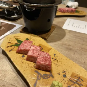 1 泊 2 食のディナーを予約する際、食事の品目 (または食事のラベル) が指定されませんでしたが、幸運なことに、中国語を話すレセプション スタッフが現地にいて対応してくれました。 改装された日本食レストランは小さく、美しく、絶妙で快適です。 季節の魚、地元名物のカタツムリ料理、和牛のバーベキューはすべてシェフが丁寧に調理し、完璧に提供します。 近くに夕日が見えるカフェと造園台が1軒だけ!