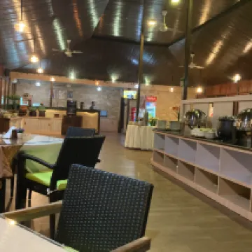 静かで、朝、海の波の音と鳥のさえずりで 目を覚ますことができるほどの自然豊かな所でした。 ホテルの目の前が海で、コテージタイプの部屋でした。 朝は、バイキング形式。 ラブハンバージョの街から少し離れているのが惜しかったです。