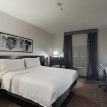 This place was located close to the freeway so convenient for easy access! Clean and very nice room with modern updates! Has pool and jacuzzi! Parking is easy, 20.00 parking fee per night which is not great but it is what it is! Would for sure recommend has it was clean and rate was at a fair price!