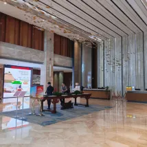 晚上10點到酒店正下着雨,一樓路面停車場停滿了,於是我們把車停負一樓,電梯按半天不下來打電話問前台告訴我這個點電梯停了,讓我從車子進來的斜坡地方走上去,這裡是行車道非人行道,人逆行爬坡很危險的,通行的人此時肚子痛!我説能否把電梯打開接我們上去,前台讓我等一下,15分鐘後保安大叔來到負一樓喊我們從車子進來的斜坡走上去,我們硬着頭皮淋着雨走上去繞到一樓大廳去!這服務真棒!