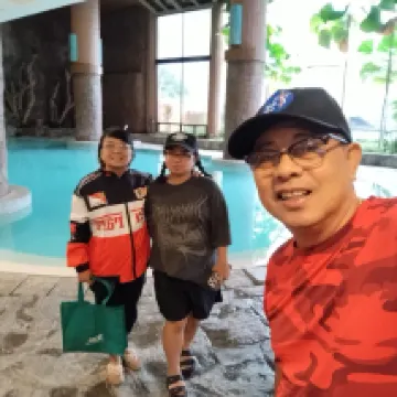 まず、2022年12月31日に私たちのチェックインを手伝ってくれた男性の受付係(荷物の運びを手伝ってくれた係員やビュッフェ式朝食の担当者を含む)を称賛したいと思います。彼らはとても親切で、反応が良く、非常に責任を持って仕事をしています。頑張って、頑張ってください。 次に、私たちの部屋は清潔で上品で、冷たいエアコンがあり、タールの景色を眺めることができます。 短所は次のとおりです。 1. Wi-Fi なし 2. 独自のデータを使用している場合でも、すべてのネットワークへの信号が弱い 3. 時折起こる電圧低下 全体として、私たちは滞在を本当に満喫し、手頃な価格で新年を祝うことができました。