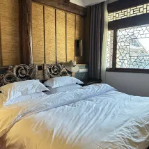 この宿は、大通りから離れた、古代都市の静かな一角にあります。この町の複雑で不規則な通路や、古代の石畳の道、運河、文化的ランドマークの小道を探索するのに理想的な拠点です。 私たちは3泊で2部屋を予約しました。中庭に隣接する1階の部屋と2階の部屋を割り当てられました。後者は少し広く、装飾的な無垢材の四柱式ベッドがありました。宿には記載されているすべてのアメニティが揃っており、すべて機能していました。しかし、私たちの意見では、この場所を際立たせているのは、私たちにサービスを提供してくれた人々でした。 心から感謝します。 Joye – 英語が上手です。魅力的です。お茶、ペストリー、フルーツをたくさん出してくれました。やるべきことをたくさん勧めてくれました。彼は、虎跳峡への日帰りハイキングを手配してくれました。往復、ポイントツーポイントです。料金は、オンラインでの法外な料金に比べて非常に手頃でした。 Mr Chang – いつも私たちが食事をしっかり摂れるように気を配ってくれました。彼は、ハイキングに持っていくためのサンドイッチとティーエッグをくれました。最後の日も夕方の列車に乗って昆明に戻らなければならなかったので、彼はそれをくれました。ハイキングの朝早く、彼はバス停まで私たちと一緒に来てくれました。最後の日には、タクシーに乗るために荷物を台車に乗せてくれました。 また、ハウスキーピングをしてくれたキャシー、いつも忙しく場所をきれいに整えてくれた勤勉で感じの良いナシ族の女性、そしてチャン氏が朝食にとてもおいしい麺、パウ、お茶を出すのを手伝ってくれた若い男性にも感謝します。最後に、ホットドッグと毛むくじゃらの仲間たちに大きなハグを。彼らはいつも最高の行儀で「家に帰る」のがとても楽しいです。