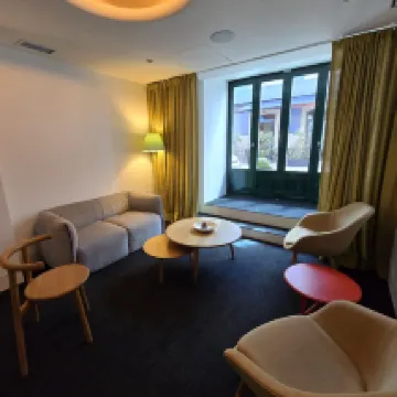 Хороший отель. Небольшой, но продуманный и уютный номер , очень удобная локация. Есть отдельнаязона отдыха и терраса, автомат со снеками.