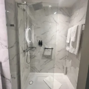 スーペリアルームを予約しましたが、送っていただいた部屋の写真には景色が写っていて、予約した部屋だと思っていたので景色が見られずがっかりしました。 閉所恐怖症の障害者として、シャワールームは難しかったです。また、ベッドがこんなに近くにあったのも理解できませんでした。部屋にはベッドの間に十分なスペースがあり、出入りが楽にできるからです。 朝食にレストランを一度だけ利用しましたが、席に案内してくれた人の歓迎や態度に満足できませんでした。おはようございますと挨拶もされませんでした。以前ここで食事をしたことがあるかどうかも聞かれず、単にセルフサービスだと言われただけで、歩行障害があるのは明らかでしたが、何の手助けもされませんでした。彼女は太った女性ではありませんでしたが、他のスタッフよりもずんぐりしていて、長い黒髪でした。彼女のバッジははっきりと見えませんでしたが、名前はルバのような名前だったと思います。食事の選択肢は豊富でしたが、周りにはもっと安い店がたくさんあります。