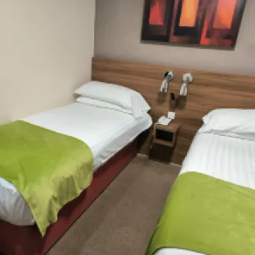 スタンステッド空港に戻った後の休憩に最適なホテルです。ビクトリア・コーチステーションのすぐ近くという最高の立地です。アメニティは少し物足りず、部屋は狭く、朝食も最低限で、シャワーにはシャンプーやボディーソープが用意されていませんでしたが、清潔で快適な滞在でした。おすすめです。