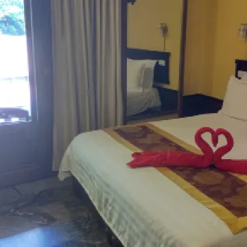 今回で ルアンパバーンは、3度目です。 1人旅なんで、ドミでなく 安いのを探して泊まってます。 ここのホテルの前を 通るたび いいなぁと思ってました! 今回、はじめて宿泊して 値段も そんな高くない。 川沿いには、いくつも 宿泊施設がありますが 角にあって、川と 山が 見えて 絶対こごが 景色よいです! 木があって だいたいのホテルからは 見えずらいです。 シャワーの水圧もいい、冷蔵庫もあり スタッフも親切、1階のテラス付きの部屋が オススメです。 次は、友達つれて 連泊したいです。