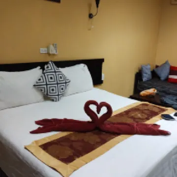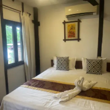 初めてのルアンパバーンで 他の方の口コミを参考に、立地重視で選びました。 トータル的にとても良かったです! 托鉢のメインストリートまで徒歩5分弱、ナイトマーケットも同様でした。近くに小さな商店や日本円両替可能な銀行、マッサージ店や飲食店も沢山あり、とても便利でした。ランドリーはGoogleマップを頼りに徒歩4-5分でありました。エアコンも効き目がよく、お湯もしっかりでました。清掃も綺麗でしたが、仕方ないが部屋に蚊が入ってしまって、寝てる間に刺されてました。土地柄、虫が沢山いるので、寝てる間もつけれるようなハーブ系の虫除けを持参するべきだなと思いました。スタッフさんもフレンドリーで、とても良かったです。またルアンパバーン行くことあればリピートしたいと思います。