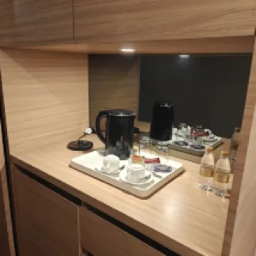 子供たちと初めてのマカオでの旧正月旅行でしたが、ホテルの立地が良く、タクシー乗り場やバス停がすぐ近くにあり、移動に便利でした。部屋も広々としていて、とても快適に過ごせました。階下には大家楽レストランがあり、食事にも困りませんでした。ウェルカムサービスも素晴らしく、そうそう、子供たちは部屋で金貨チョコレート入りの新年のお年玉をもらって、とても喜んでいました。
