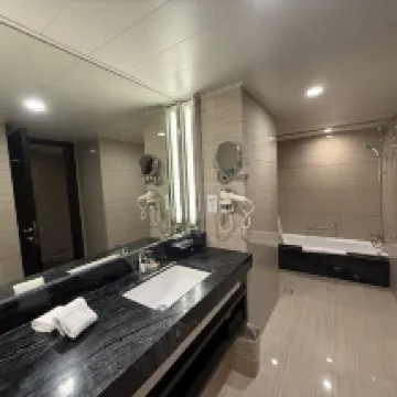 高層階で眺めが良く、清潔で快適でした。スタッフの方も「新年おめでとうございます」と積極的に挨拶してくれて、香港で泊まったホテルよりもずっと良かったです。唯一の不満は、トリプルルームで適切な厚さの掛け布団を一枚追加してもらうのに時間がかかったことです(掛け布団が二枚では足りませんでした)。最大3名まで宿泊できる部屋なのだから、同じサービスを求めるのは妥当だと思います。また、マカオではボトルウォーターの提供に限りがあるかもしれないので、他の旅行者も注意した方がいいでしょう。全体的には期待以上で、とても良かったです。