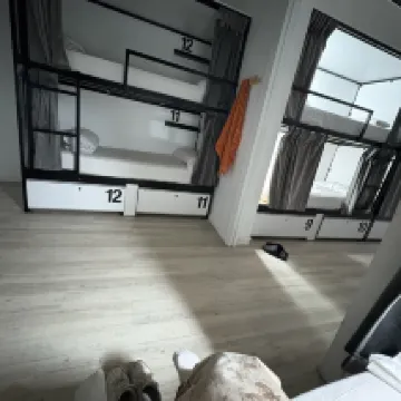 すべてが素晴らしかったです!スタッフ、お部屋、朝の無料のコーヒーとマフィン、そしてコーヒーマシンで一日中1ユーロでコーヒーが飲めるなど、すべてが徒歩圏内です。スーパーマーケット、観光スポット、劇場、そして楽しい時間を過ごせる場所が山ほどあり、幸せな生活に必要なものはすべて揃っています。とても満足です。唯一残念だったのは、夕方になるとキッチンから漂ってくる匂いと、トイレの掃除がもう少し頻繁に行われていれば良かった点です。でも、それらは些細なことです。それ以外は、とても満足でした。ベッドは二段ベッドでしたが、とても快適でした。