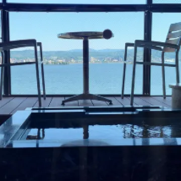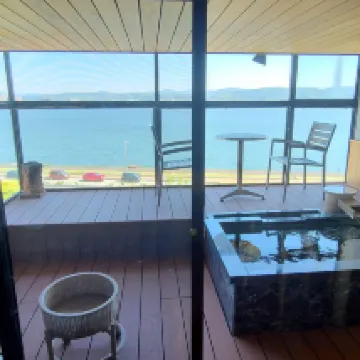 Stayed in the Cloud room with a private onsen in the balcony facing an awesome view of the lake. Room was clean and spacious with a generous supply of amenities. Visited the public bath as well but was nothing impressive. Beer and yakult was provided free of charge in the hotel lobby. Note that if you are traveling with young children, they change an extra ¥2500 per child just for them to be in the room, no extra beds provided and breakfast is a separate charge. Breakfast served was exquisite and in a private dining room which we appreciate. Overall nice experience but just one night is enough as the town is very quiet and the room price is very steep.