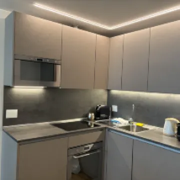 スタッフはとても親切でフレンドリーでした。立地は最高で、中央駅からわずか2ブロックです。スーパーマーケットも近くにあります。チェックイン時に家番号を探して下にスクロールすると、B1にあります。私たちは2ベッドルームのアパートを予約しました。バスルームはマスターベッドルームに1つしかないので、シャワーとトイレはそこを使う必要があります。タオルと石鹸は十分にありました。IHクッキングヒーター、電子レンジ、オーブン、皿、鍋、カップ、食器洗い機(食器洗い洗剤が2錠付属)、洗濯機、乾燥機が備わっていました。調理中は窓を開ける必要があり、レンジフードは使用できませんでした。油、塩などの調理器具は自分で用意する必要があります。洗濯用の洗剤も自分で購入する必要があります。ホテルのサービスではないので、チェックイン時に多くの日用品を用意する必要があります。スペースは良かったです。