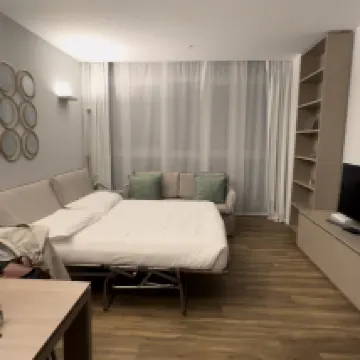 ホテルはミラノ駅に近く、交通の便も良く安全です。明るく広々とした景色が楽しめる高層ビルです。家族3人で2泊しました。スイートルームは広々としており、鍋などの調理器具が揃ったキッチンが備わっていました。外食に慣れていない方でも、食材を買ってきて自炊できます。部屋には洗濯機、アイロン、乾燥機も完備されており、まるで自分の家にいるような気分でした。お子様連れの旅行者にもおすすめです!