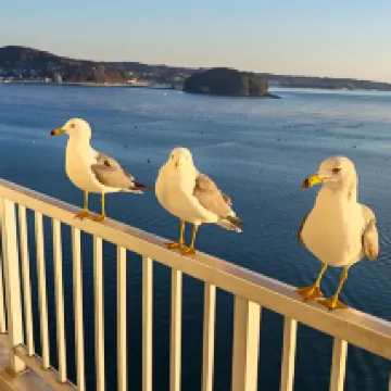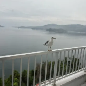 このホテルに来た一番の目的はカモメに餌をあげることでしたが、期待を裏切らない素晴らしい体験でした。カモメは早朝からやって来ました。外にあるスーパーでカルビーのエビフライを買っておかないと、カモメに餌をあげる機会がなくなってしまいます。