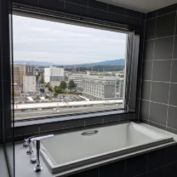 立地は良いが、コスパが悪い。 金額の割にそこまで部屋は広くなく、露天風呂も小さい。 朝食もマンネリのメニューなので、金額に見合ったサービスを徹底して欲しい。 新幹線乗り場からは地下道の往復が面倒くさく、車寄せも駅前のロータリーを利用するなど、細かな欠点が多々ある。 近隣にもホテルがあるが、綺麗さはここが一番。