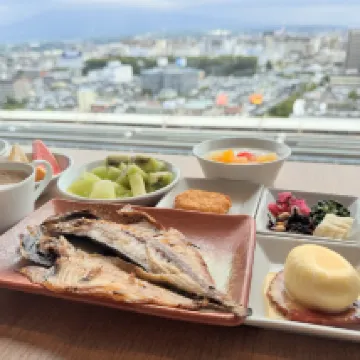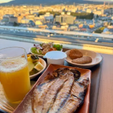朝食のアジの開き、焼きたてで美味しかったです。 お部屋も広く、ソファーも有りましたが背もたれがなく、腰痛があるので背もたれのある椅子1脚あると良いなぁと思いました。