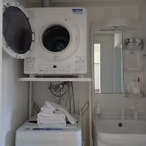 部屋はとても綺麗でした。最低限生活はできる食器やカトラリーあり、洗濯機、乾燥機あり便利。チェックインの時にお水2本もらえる。冷蔵庫にドリンクが数本入っていたがサービスなのか分からなかったので飲んでいない。 部屋着はなかった。 チェックアウトは入り口のボックスに鍵を返却するのみ。 街中の飲み屋にも歩いて行けて良い。