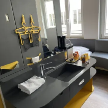 ミュンヘン中央駅から徒歩7分、かつ観光地へのアクセスも容易なので立地はとても良いです。 部屋はかなり狭く、スーツケースを広げるのも大変でした。