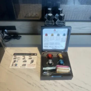 ロケーションは最高でした。(最初は見つけるのに苦労しましたが、慣れてしまえばとても便利です。)ホテル全体が美しさ、香り、豪華さに満ちていました。カプセルコーヒーは美味しく、お茶も甘くて美味しかったです。アメニティも高品質でした。サービスは概ね良好でしたが、中には英語があまり得意でないスタッフもいたようです。全体的に、母は大満足していました!