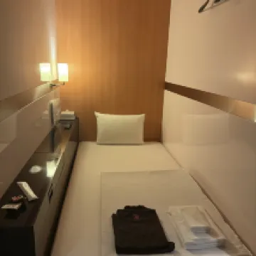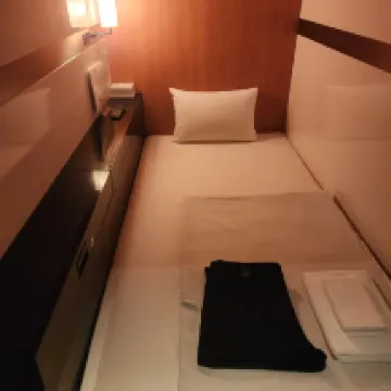 観光で1泊2日利用しました。立地がとても良く、主要な観光名所へのアクセスがしやすい点が印象的でした。短い滞在でも移動のストレスが少なく、観光重視の旅行に向いていると感じます。 館内は全体的に清潔感があり、カプセルホテルでありながら安心して快適に過ごせました。タオルや館内着、アメニティが充実しており、ほぼ手ぶらで滞在できるのも嬉しいポイントです。 ベッドは他のカプセルホテルと比べて横幅が広く感じられ、手足が壁に当たることがなく、ゆったり休むことができました。窮屈さを感じにくい設計だと思います。 また、男女別のフロアになっており、それぞれのフロアに大浴場や洗面室があるため、移動がとても楽でした。夜や朝の利用でも動線がシンプルで使いやすかったです。 一点だけ気になったのは、正面入口からエレベーターまでに半階分の段差があることです。大きな荷物がある場合は、少し大変に感じるかもしれません。 総合的には、清潔さ・立地・快適さのバランスが良く、観光目的の宿泊にとても満足できる施設でした。