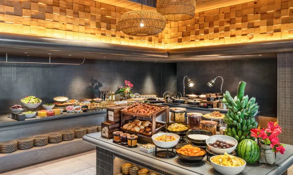 開業したばかりで設備や内装はとても新しく、朝食はごく普通でした。美味しかったのはキウイとオムレツだけで、オムレツシェフの*をひっくり返す腕前は見事でした。沖縄ゴーヤと一緒に食べると美味しく、紅茶のティーバッグもコーヒーもとても美味しかったです。ブルーシールアイスと小さな海ぶどうもありました。