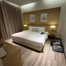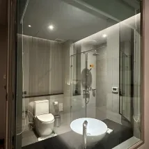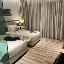 Really enjoyed the service at the hotel. Very nice facade and modern looking. We booked a room with pool view and it was very spacious for us, a family of four. Kids enjoy the bathtub as well. The breakfast and the spread was decent. However, there was no shelter walkway from the hotel building to the lobby and restaurant, so it was very inconvenient on a rainy day. The hotel staff ferried us with the large umbrella to and fro, so I guess this was considered a plus point.