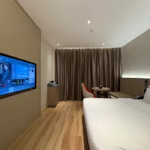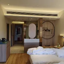 It was very nice. They come pick you up from airport but English is limited so best to have someone that speaks Chinese with you. They are very very friendly. Room is very nice. Got free breakfast which was buffet style. Got driven back to airport after. There is a small convenience store downstairs. Would come again. Thank you for your service.