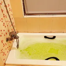 全体的に古い。掃除も十分ではない。シャワーヘッドを固定する場所が壊れていて常に手に持っておく必要があった。