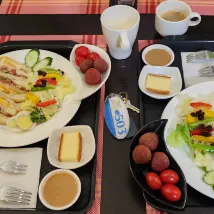 年配の方でも荷物を運ぶのに適したエレベーターがあり、賑やかな通りまで徒歩3分以内で、夜も静かでとても便利です。その日は雨が降っていたので、受付の方が丁寧にコインランドリーの場所を教えてくれましたし、お風呂も広くて快適、食事も量が多くてケチらずに丁寧に部屋に届けてくれました。大人も子供も今回の滞在を満喫しました。