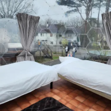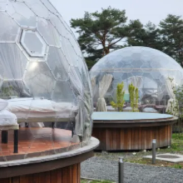 AURAの透明なドームを体験するためにわざと見つけました。感じが良かったです。様々な形の独立した客室がありますが、AURAドームで寝るときはトイレ、バスルームが共用スペースを使用する必要があります。付いているハイランドパークの無料入場が可能なのでプレゼントをもらった感じです。