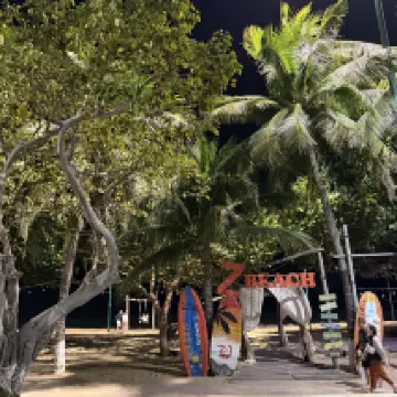 Just near the beach and many restaurants shops.