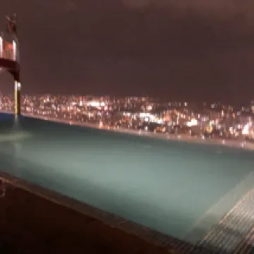 プールおよび展望BARではニャチャン市街が一望できます。 BARのスタッフはイマイチ。 夜は夜景もきれいでした。 エレベータは低層階と高層階に分かれていますので25階で乗換が必要です。 部屋は申し分ありません。 朝ごはんもおいしくいただきました。