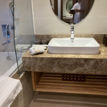 立地がとても素晴らしく、スタッフのみなさんも大変親切でした。屋上からの景色も素敵でした。施設は古いですが清潔感が保たれています。 部屋の冷蔵庫が全く冷えないことと、ガラス壁はあるもののシャワーを浴びると洗面所までかなり濡れてしまうことは少し残念でした。また、テレビが将来的にスマートテレビなどになると滞在がかなり快適になるなと思いました。(今はホテルのプロモ映像と現地チャンネルしか利用できない) 5つ星ホテル感はあまりないかもしれませんが、全体的に問題なく快適に滞在できました。